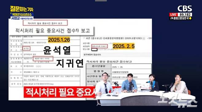 ▶서영교> 그거 누가 만든 거냐면 입법부가 만든 거예요. 그게 입법부입니다. 입법부가 천하무적이나 그 위에 있는 게 아니라 견제를 한 거예요. 중계하는 것도 위헌이라고 한참 그랬어요. 자기네 판사가 알아서 하는 건데 왜 밖에서 중계하라고 하느냐. 그러다 국정감사 때 제보가 날아 왔어요. "지귀연에게 윤석열을… 무작위 배당이 아니었어요. '적시처리 필요 중요사건'이라고 했어요"라고. 이런 자료가 저한테 왔어요. 2025년 1월 26일날 접수가 된 거예요. 자기네끼리 모여서 윤석열 거를 2월 5일에 "이거, 중요사건으로 지정해. 지귀연한테 관련 사건으로 넘겨줘" 이렇게 된 거예요.