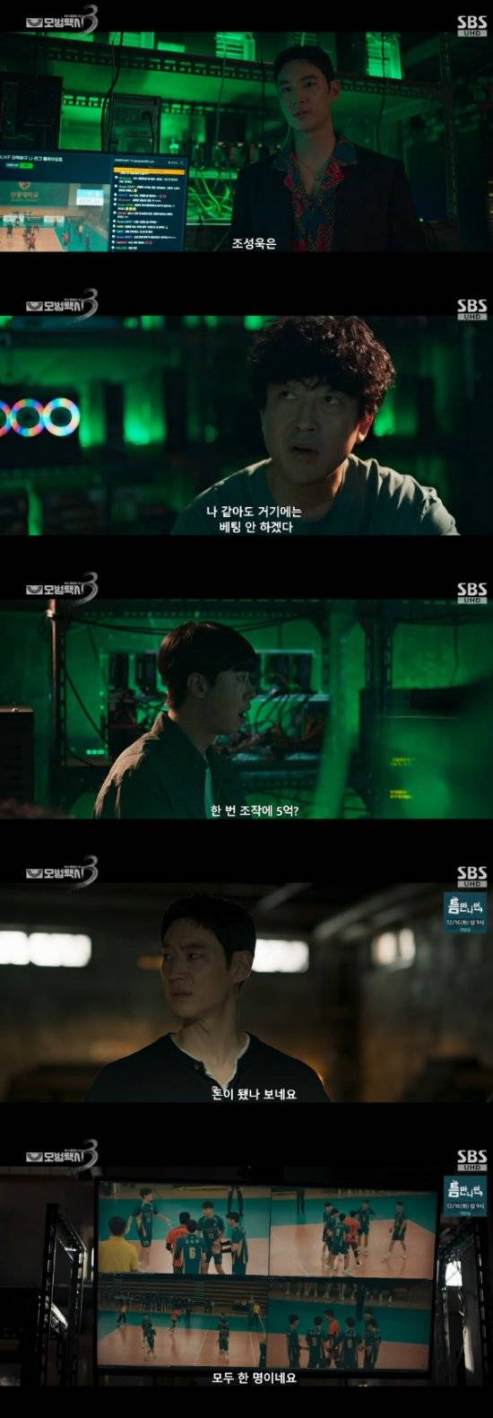 이 과정에서 배구부 동료인 임동현(문수영)과 조성욱(신주환)이 공모해 박민호를 살해하고 암매장했고, 현재 이들이 진광대 배구부를 이용해 불법 스포츠 도박 및 승부조작을 저지르고 있다는 사실을 알아냈다.