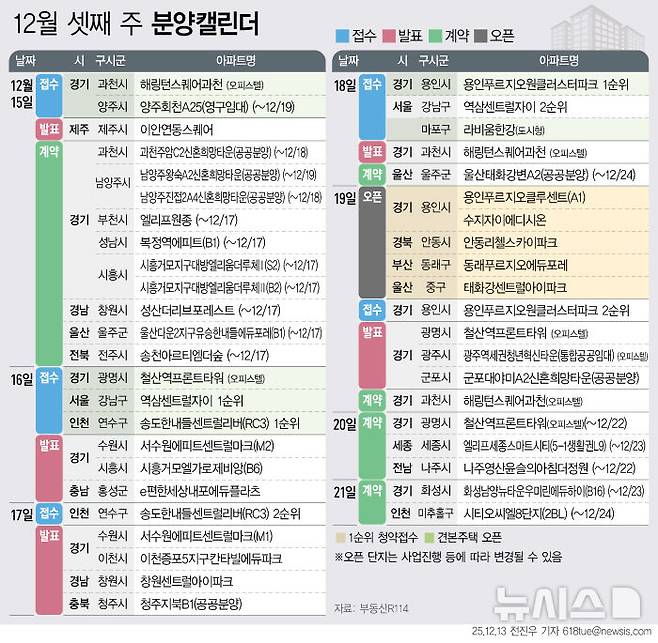 [그래픽] 12월 셋째 주 2594가구 공급 예정 [분양캘린더]