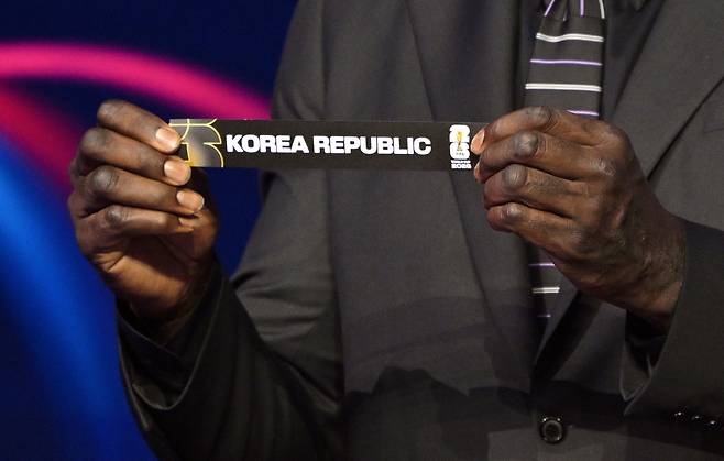 | ▲ 5일(현지시각) 미국 워싱턴 D.C 존 F. 케네디 센터에서 열린 2026 북중미 FIFA 월드컵 조 추점에서 추첨자로 나선 샤킬 오닐이 '대한민국'이 적힌 종이를 들어 보이고 있다. |