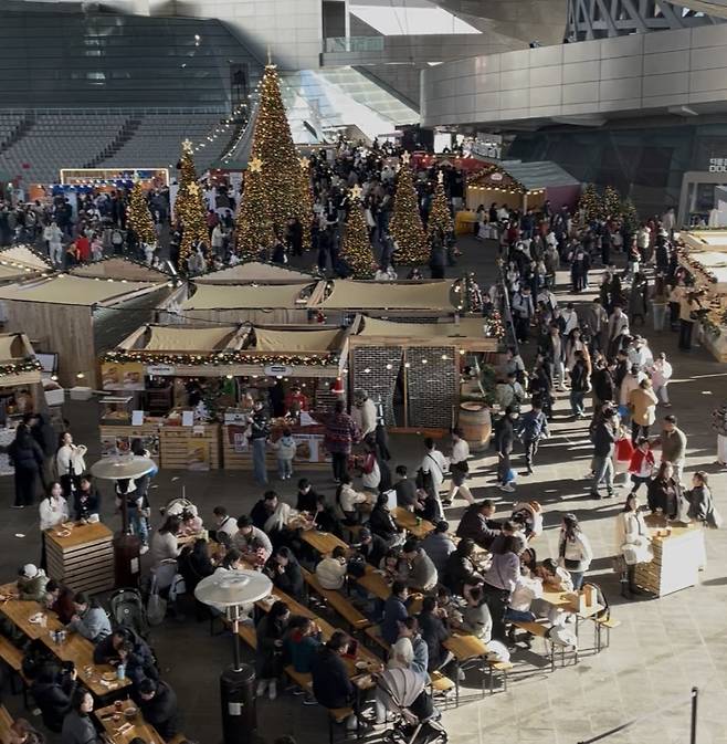 행사장에 들어서자 가장 먼저 눈에 들어온 것은 대형 크리스마스트리와 화려한 조명이었다. 아이 손을 잡은 가족, 사진을 찍는 연인, 친구들과 함께 걷는 시민들이 자연스럽게 어우러지며 도심 속에 작은 겨울 마을이 만들어진 듯한 풍경을 연출했다. 해가 지고 조명이 켜지자 평소 익숙했던 공간은 전혀 다른 분위기로 바뀌었다.