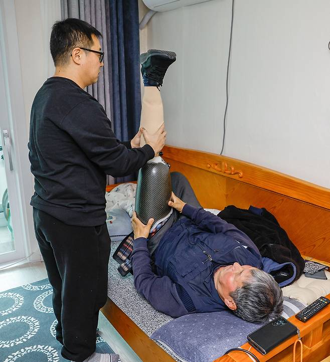 육체의 고통보다 더 아픈 것은 일상의 상실감이었다. 중환자실에서 일반 병동으로 이어진 긴 병원 생활, 병상에 누워 천장만 바라보던 석곤은 수없이 되뇌었다. 불행 중 다행으로 산업재해 인정은 됐지만, 한쪽 다리로만 살아갈 날이 아득했다.