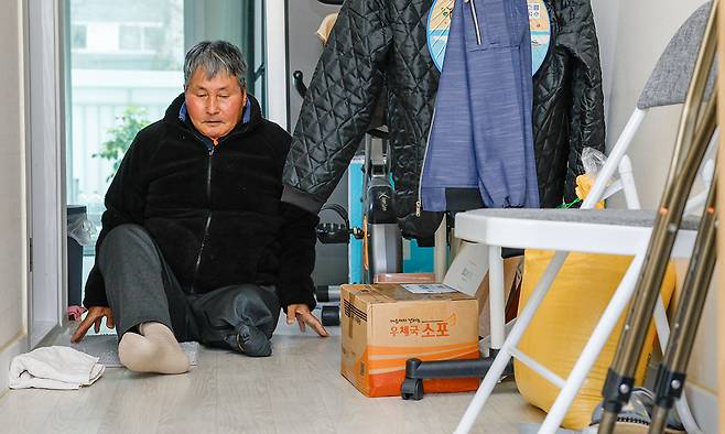 석곤은 지난해 5월 둘째 아들이 사는 전주로 이사했다. 지난 10일 완산구 평화동 주공아파트 1층 자택에서 만난 석곤은 당시를 “뼈가 바사삭 부서지는 것 같았다”고 기억했다. 사고 장면을 떠올린 순간 오른쪽 다리를 거실 바닥에 쾅쾅쾅쾅쾅 다섯 번이나 굴렀다. 몸서리쳐지는 기억이었다.