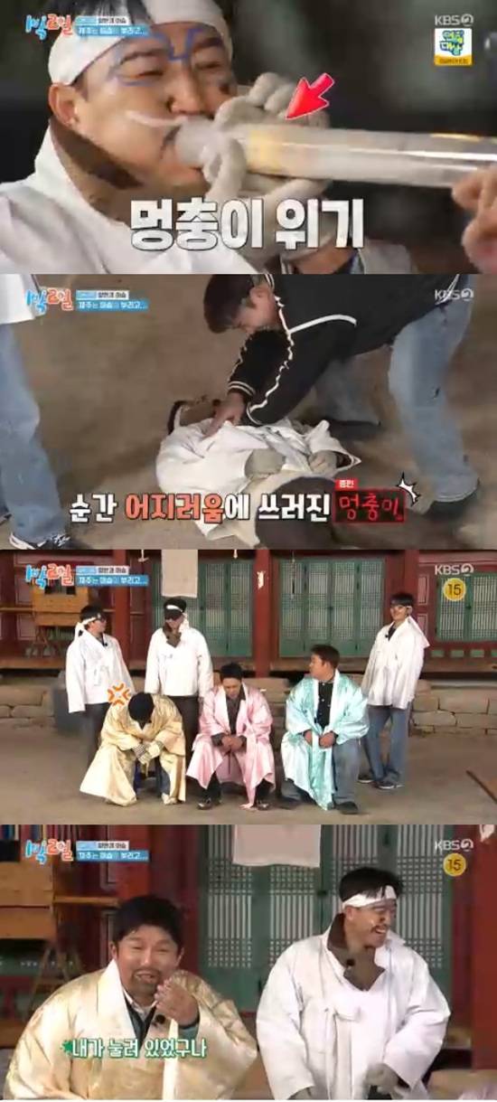 14일 방송된 KBS 2TV '1박 2일 시즌4'에서는 김종민, 문세윤, 조세호, 이준, 딘딘, 유선호가 경북 안동으로 떠나는 모습이 전파를 탔다.