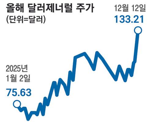 올해 미국 증시 상승을 이끈 엔비디아의 주가 상승률을 두 배 이상 웃도는 성과다. 특히 블랙프라이데이를 기점으로 쇼핑시즌이 본격화하는 연말로 갈수록 상승세가 뚜렷해지는 양상이다.