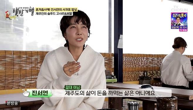 마지막으로 진서연은 "제주도에 있어도 동네 맛집이나 가지, 멀리 다닌 적 없는데 너무 맛있다. 몰랐던 제주를 알게 됐다"라고 소감을 전하며 "저희 동네 맛집 카메라 꺼지면 말씀드리겠다"라고 덧붙였다.