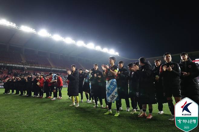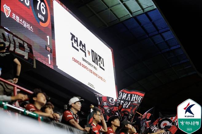 올 시즌 포항은 또 하나의 지표를 세웠다. 2025시즌 홈경기 평균 관중 1만명(1만248명)을 달성했다. 총 좌석수의 71.8%에 해당하는 높은 수치다. 2018년 K리그가 유료 관중 집계를 시작한 이후 구단 역사상 처음으로 달성한 대기록이다. 포항의 여건을 고려하면 더 의미가 깊다. 포항시 인구는 2025년 10월 기준 48만8953명이다. 소도시라는 한계를 극복하고, 인구 대비 높은 관중 비율을 자랑했다. '축구도시 포항'이라는 평가가 어색하지 않은 성과다.