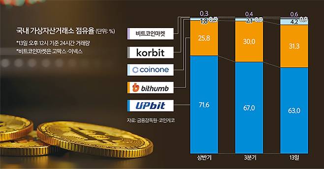 해킹 악재 업비트 점유율 60%대로 ↓