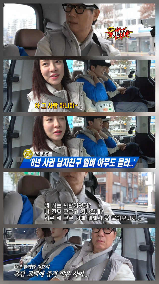 14일 방송된 SBS 예능 프로그램 ‘런닝맨’에서는 송지효의 뜻밖의 연애 고백이 전파를 탔다. 멤버들과 차량으로 이동하던 중 지석진이 “마지막 연애가 언제냐”고 묻자, 송지효는 “4~5년 전”이라며 말문을 열었고, 이어 “마지막 남자친구와는 8년 정도 만났다”고 밝혀 현장을 술렁이게 했다.