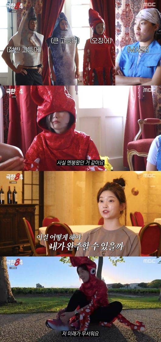 츠키는 오징어 의상을 입은채 달리기 연습에 나섰고, 그는 “사실 멘붕이 왔다. 다리가 너무 무겁다. 바운드가 되서 몸이 리듬이 안 맞는다”라고 걱정을 드러냈다.