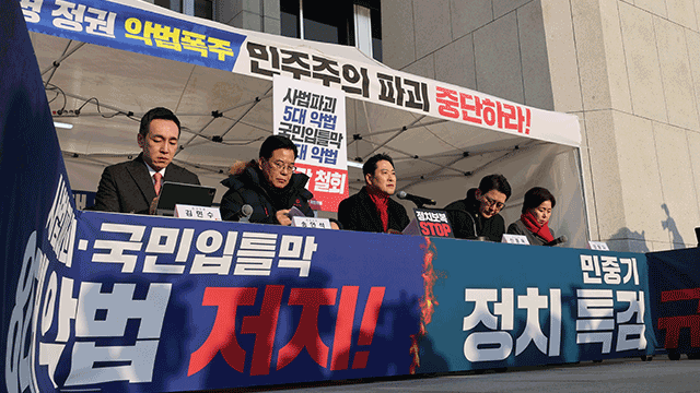 또한, 송 원내대표는 이 대통령이 방송미디어통신위원회 업무보고 중 종합편성채널의 편향성을 언급한 것과 관련해서도 “정권에 비판적인 언론을 직접적으로 폄훼하면서 ‘행정조치까지 가능하지 않으냐’는 말은 대통령이 직접 언론 입틀막을 지시한 것이나 마찬가지”라고 강조했습니다.