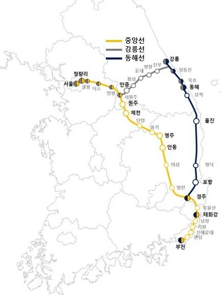 △부전역에서 청량리역까지 가는 중앙선과 △부전역에서 강릉까지 가는 동해선에 고속 열차가 투입된다.