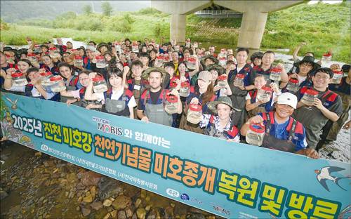 국내외 직원이 함께 참여하는 친환경 생태계 보전 활동이 눈길을 끈다. 현대모비스는 지난 11월 충북 진천군 미호강 일대에서 천연기념물이자 1급 멸종위기종인 미호종개 치어 3000마리를 방류하는 생태보전 활동을 진행했다. 국내외 임직원과 지역주민, 유관 기관 관계자 등이 동참했다.