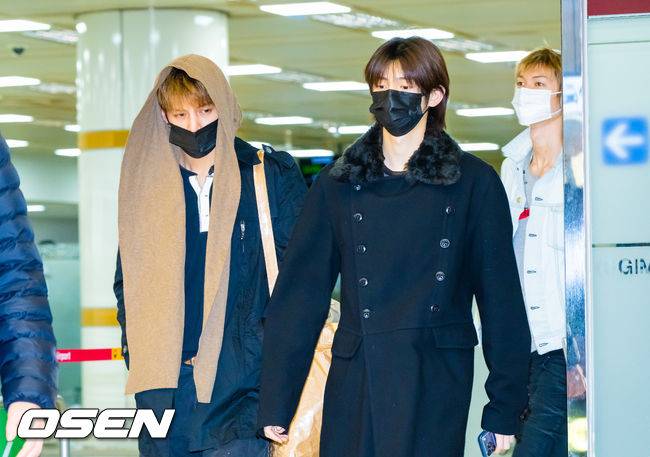 코르티스 주훈과 제임스가 입국장을 나서고 있다. 2025.12.15 / soul1014@osen.co.kr