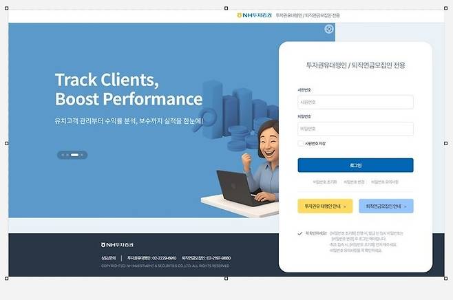 [NH투자증권 투자권유대행인·퇴직연금모집인 전용 홈페이지. (사진=NH투자증권)]