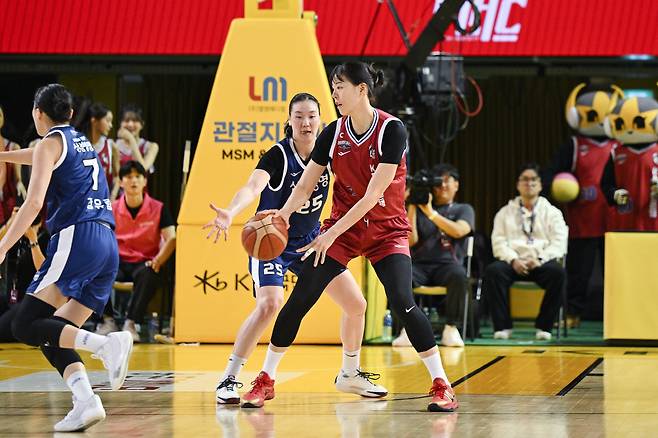 하지만 승부에 들어가선 '우정'은 잠시 지워졌다. KB는 허예은의 3점포로 첫 포문을 연 이후 송윤하의 연속 6득점, 여기에 허예은이 삼성생명 센터 배혜윤을 앞에 두고 여유있게 플로터까지 성공시키며 11-5까지 앞서갔다. 또 사카이 사라와 허예은의 연속 3점포가 이어졌다.