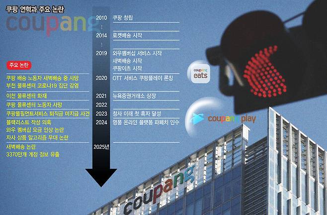 그러나 김 의장은 규제 사각지대에서 사업을 무한 확장하는 과정에 빚어진 각종 사회적 논란의 책임에서는 철저히 비켜서 있다. 2020년 로켓배송 론칭 뒤 시장지배력이 커진 쿠팡에서 배송 노동자가 새벽배송 중 숨지는 사고가 발생했다. 가혹한 노동조건에 대한 논란이 거세게 일었고, 이어 △배달·물류센터 노동자 과로사·산재 사건 △퇴직금 미지급 △검색순위 조작 △쿠팡이츠 입점업체 수수료 △블랙리스트 △부가 서비스 끼워팔기 등 각종 논란이 터져 나왔다.