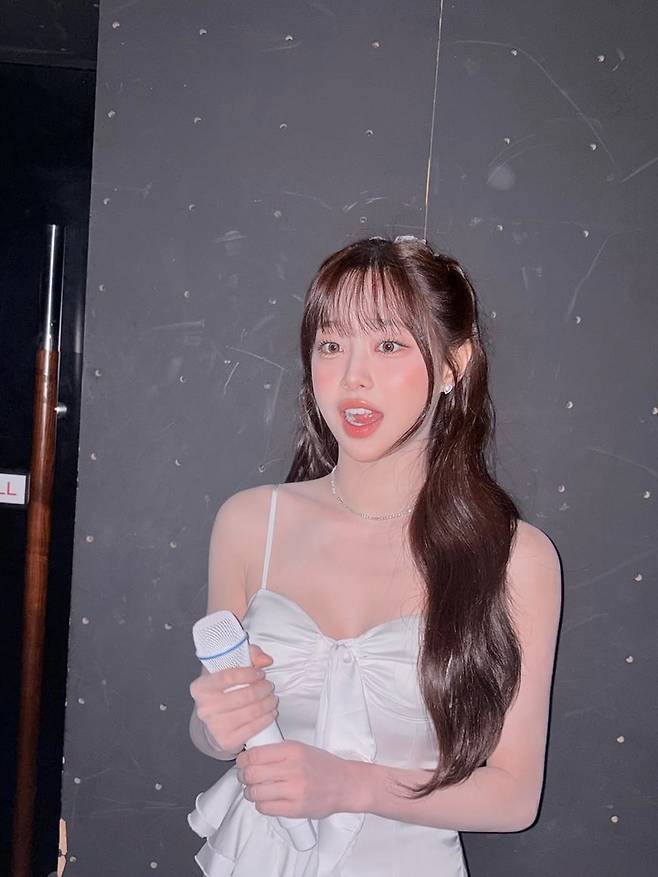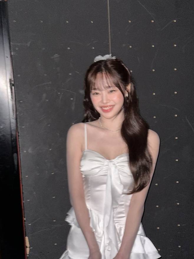 공개된 사진 속 츄는 실크처럼 은은하게 빛나는 화이트 리본 원피스를 입고 무대 마이크를 손에 든 채, 사랑스럽고도 우아한 여신 미모를 보여줬다.