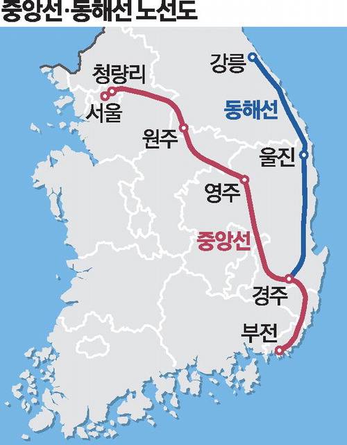 16일 국토교통부와 부산시에 따르면 중앙선은 서울 청량리역에서 출발해 원주·제천·안동·경주·울산을 거쳐 부산 부전역까지 이어지는 총 433㎞의 철도 노선으로 한반도 내륙을 남북으로 관통한다. 확정된 운행 계획에 따르면 중앙선 KTX-이음은 부산 신해운대역에 하루 8회, 센텀역과 기장역에 각각 하루 2회 정차한다. 앞으로 역별 이용객 수가 늘어나면 정차 횟수를 확대할 계획이다.