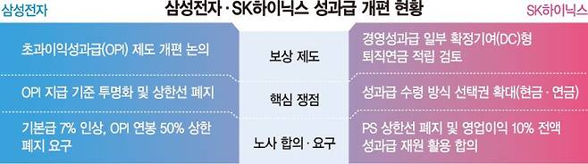 앞서 SK하이닉스 노사는 지난 9월 PS 상한선(기본급의 1000%)을 폐지하고, 매년 영업이익의 10%를 전액 성과급 재원으로 활용하기로 합의한 바 있다. SK하이닉스 관계자는 "경영성과급의 선택지를 넓히는 차원에서 다양한 방안을 검토 중"이라고 설명했다.