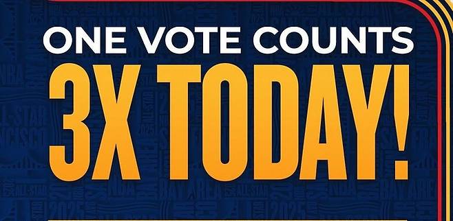 팬들은 NBA ID를 통해 NBA 앱과 NBA.com에서 하루에 한 번 투표용지를 제출할 수 있으며, 오는 22일, 26일, 31일, 이듬해 1월 8일, 1월 15일에는 '3-for-1 데이'가 적용돼 하루 투표가 세 배로 집계된다.