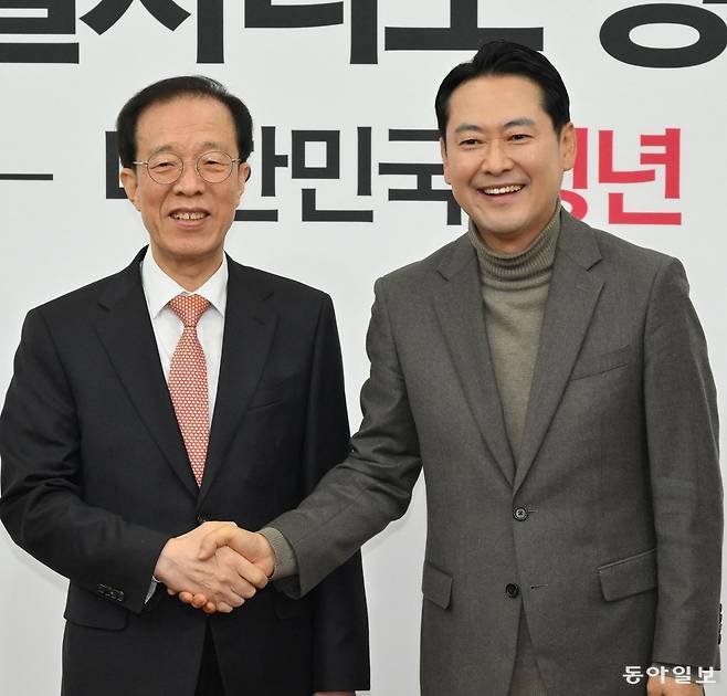 | 장동혁 대표, 이석연 국민통합위원장 만나 국민의힘 장동혁 대표(오른쪽)가 16일 서울 여의도 국회에서 이석연 국민통합위원장을 만나 악수하고 있다. 장승윤 기자 tomato99@donga.com |