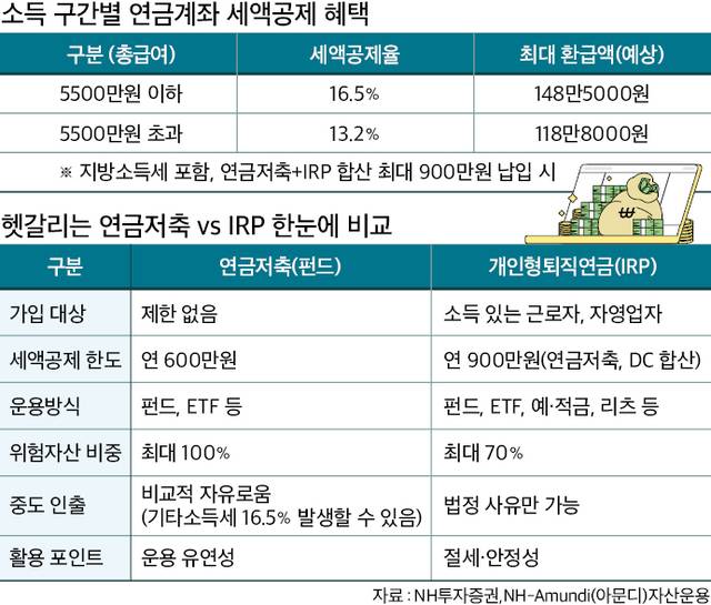 연금저축과 개인형퇴직연금(IRP)에 연간 최대 900만원을 납입하면 148만원이 넘는 세액공제를 받을 수 있다.
