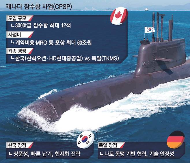 캐나다 60조원 잠수함 사업…한국·독일 벼랑끝 ‘국가 대항전’