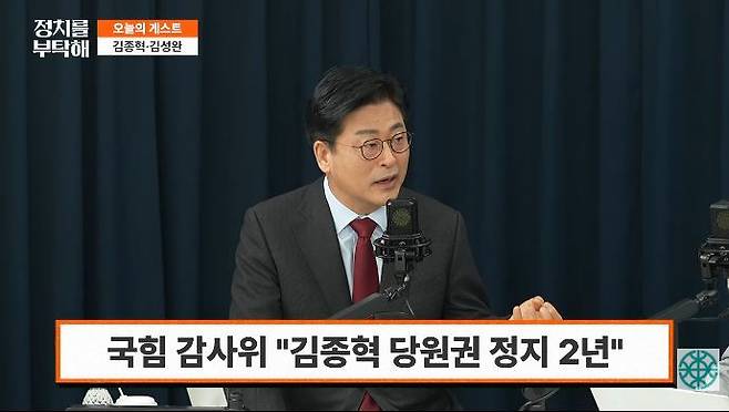 ▶ 김종혁: 우연의 일치로 그렇게 됐죠. 저도 어저께 징계 통보받고 여러 가지 그 이후에 공식적인 유튜브는 처음인 것 같아요.