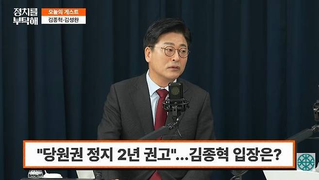 ▶ 김종혁: 우연의 일치로 그렇게 됐죠. 저도 어저께 징계 통보받고 여러 가지 그 이후에 공식적인 유튜브는 처음인 것 같아요.