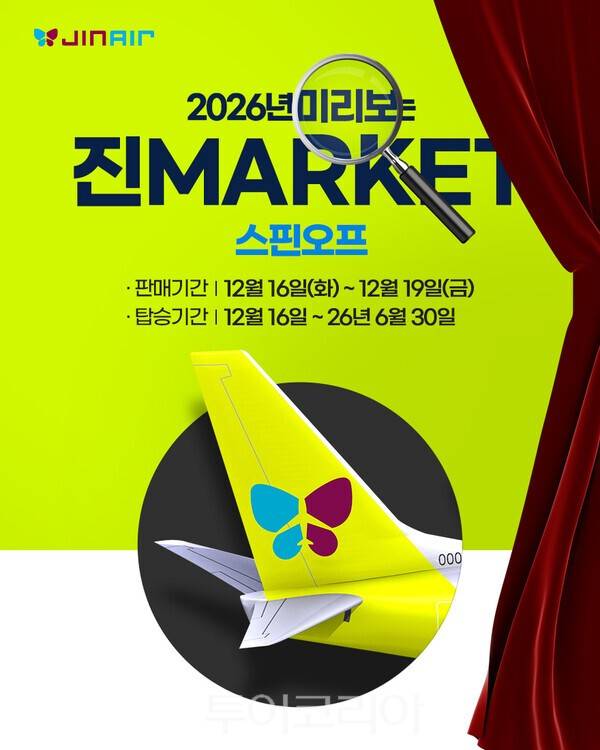 진에어는 '2026년 미리보는 진마켓'을 통해 내년 봄·여름 시즌 항공권을 6만 원대부터 선보이며 얼리버드 수요를 적극 공략하고 있다.