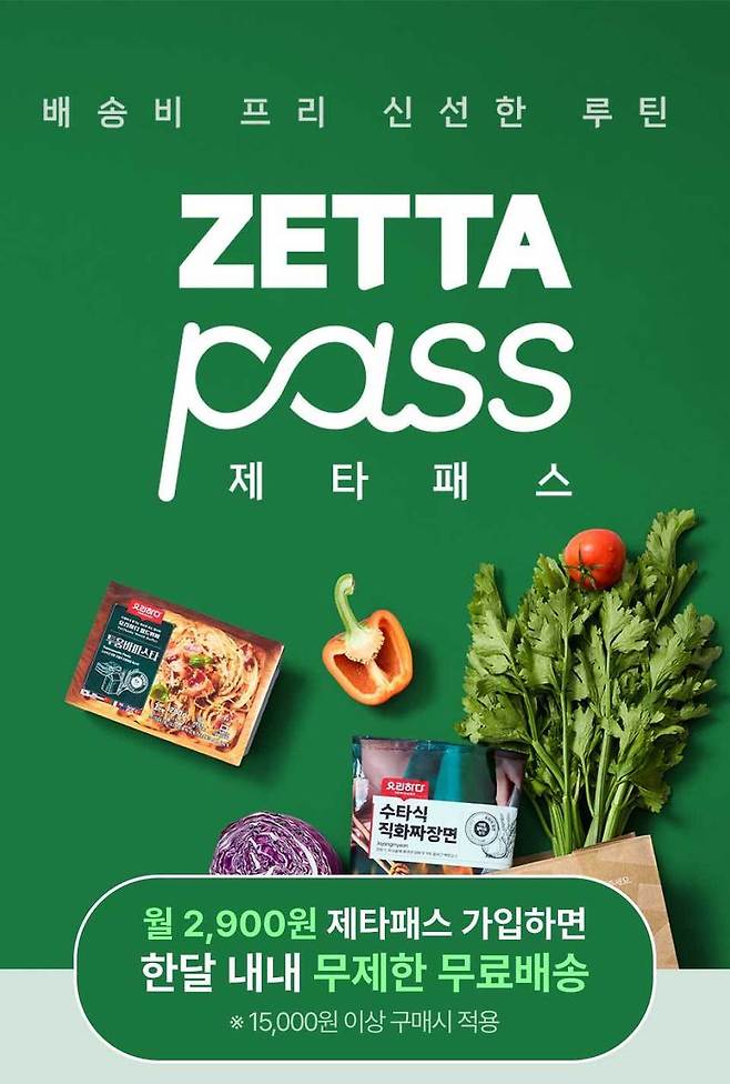 제타패스는 월 2900원 구독서비스로, 온라인 롯데마트에서 1만5000원 이상 구매 시 횟수 제한 없이 무료배송, 신선·가공 신상품 5% 할인 혜택을 받을 수 있습니다.
