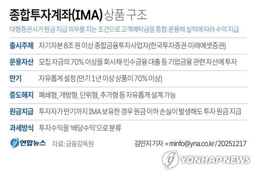 (서울=연합뉴스) 김민지 기자 = 금융감독원은 IMA 상품 출시 지원 및 투자자 보호 강화를 위한 태스크포스(TF) 논의를 통해 종합투자계좌(IMA) 상품의 내용·형식을 대폭 강화했다고 17일 밝혔다.