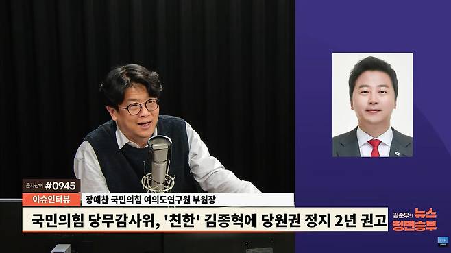 ◆ 장예찬 : 김종혁 씨에 대해서는 우리 당에 너무 많은 당원들이 적어도 이 분은 징계해야 되는 거 아니냐는 여론이 들끓었고요. 지난번에는 당무감사위 조사 결과를 거치지 않은 윤리위의 판단이었고, 이번에는 이호선 위원장이 전문을 공개할 정도로 매우 치밀하게 당무 감사가 이루어진 것으로 보거든요. 물론 징계를 받는 당사자들은 전부 다 억울하죠. 원래 범인들은 다 경찰이 나쁜 사람 같고 검찰이 조작 수사한 거라고 주장하는 법이죠. 그러나 당내에 공식적인 절차를 거친 만큼 윤리위에서 추가적으로 어떤 결정이 나올지 모르겠지만 당내 독립 기구의 결정은 저희가 존중할 필요가 있다고 생각하고요. 무엇보다 2022년에 김종혁 씨가 비대위원일 때 당의 결정에 대해서 가처분하는 것은 옳지 않다는 식으로 비판을 굉장히 세게 하셨거든요. 그리고 그때 이준석 전 대표가 우리 당을 향해서 북한 공산당 같다 표현 쓴 거를 징계 사유라고 김종혁 씨가 스스로 방송에서 말씀하셨어요. 이번에 본인 발언 중에 그런 게 또 징계 사유로 되어 있기 때문에, 저와 논쟁할 일이 아니라 2025년 지금의 김종혁 씨가 2022년 과거의 자신의 발언을 돌아보면서 이야기할 문제라고 생각합니다.