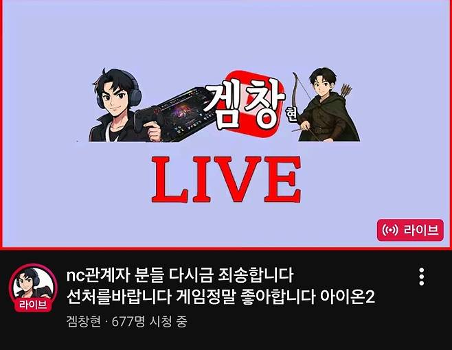 겜창현은 법적 대응 소식을 접한 뒤 “엔씨 관계자 분들 다시금 죄송합니다. 선처를 바랍니다”라는 제목의 방송을 켰다.