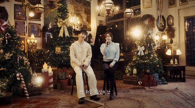 공개된 영상엔 크리스마스 무드 속 '우리 사랑하게 됐어요'를 노래하는 조권과 가인의 다정한 모습이 담겼다.