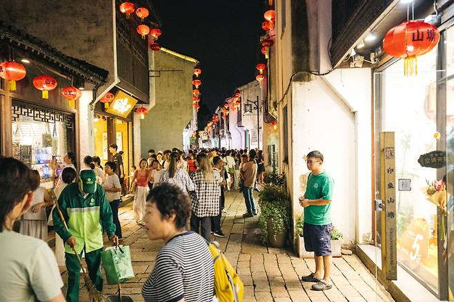 늦은 저녁이면 운하의 수면에 형형색색 등불이 반사된다. 배가 지나가며 남기는 작은 파문은 이곳이 아직 살아 있는 물길임을 증명한다. 산탕제는 쑤저우라는 도시의 성격을 가장 솔직하게 드러내는 공간이다.