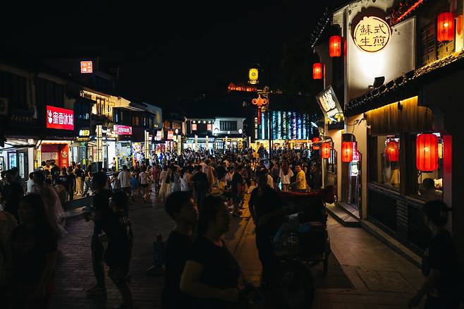 산탕제는 운하 도시 쑤저우의 성격을 가장 압축적으로 보여주는 공간이다. 그 모습이 너무 아름다워 중국에서 가장 아름다운 10대 거리로 꼽히기도 했다. 물길을 기준으로 상업지대가 형성되고, 인력이 아니라 배가 물류를 담당했던 시대의 흔적이 지금까지 잘 보존되어 있다. 오늘날 산탕제는 명백한 관광지다. 그래서 일부는 쑤저우의 진짜 멋이 사라졌다고 말하지만, 실상 이 거리의 역사는 애초에 '교역과 이동의 중심지', 즉 사람들이 모여들던 시장이었다. 사람들이 여전히 이곳에 모일 뿐이다.