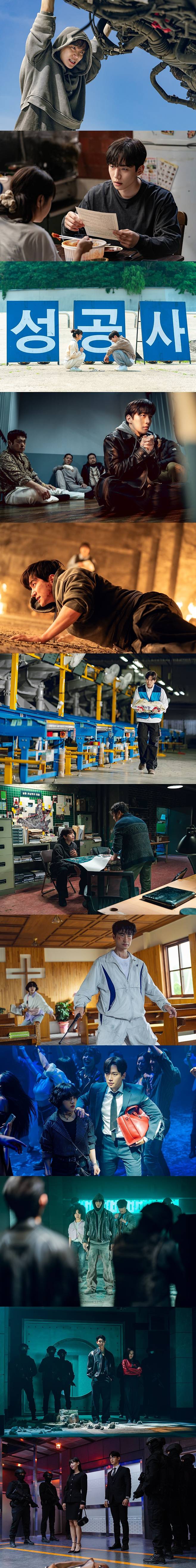 잔뜩 빨개진 얼굴로 누군가에게 맞서고 있는 ‘변호인’(김병철)과, 수많은 사람들 틈에서 ‘상웅’과 함께 작전을 수행하고 있는 ‘방은미’(김향기)의 모습 역시 눈길을 끈다. 두 사람은 자칭 대한초능력자협회의 회원이자 ‘상웅’의 든든한 조력자로 활약하며 유쾌한 케미스트리를 선보일 전망이다. 초능력자들을 노리는 집단인 ‘범인회’의 안하무인 막내아들 ‘조나단’(이채민)이 ‘상웅’과 대치하고 있는 모습에서는 그들 사이의 팽팽한 긴장감과 신경전을 엿볼 수 있다. 여기에, 자신을 둘러싼 경호대 사이에서 자신만만한 눈빛으로 서 있는 ‘범인회’의 유력한 후계자이자 첫째 딸 ‘조안나’(강한나)의 모습은 그가 이끌 또 다른 예측 불가한 전개를 예상하게 만든다.