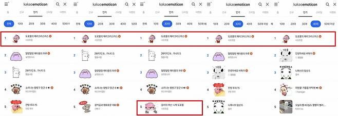 지난 16일 출시된 '도로롱의 메리크리스마스' 이모티콘은 이튿날인 17일 종합 순위와 10대·20대·30대·40대 인기 순위에서 모두 1위를 달성했다. 50대 이상 부문에서도 3위에 오르며 전 연령층에서 고른 인기를 얻었다. 이와 함께 기존 출시 상품인 '승리의 여신: 니케 도로롱' 이모티콘 역시 인기순위 5위에 재진입하는 역주행 현상도 일어났다.