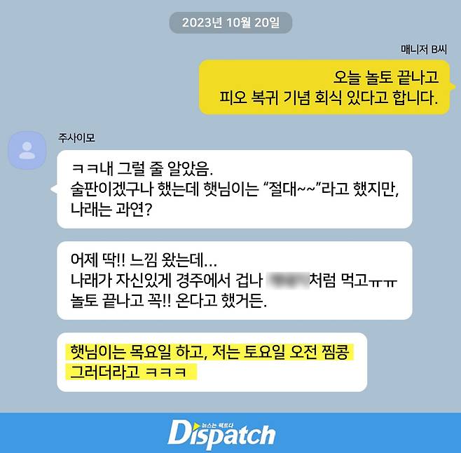 [Dispatch=김소정·유하늘기자] '주사이모' A씨가 박나래 매니저에게 신신당부를 했다.