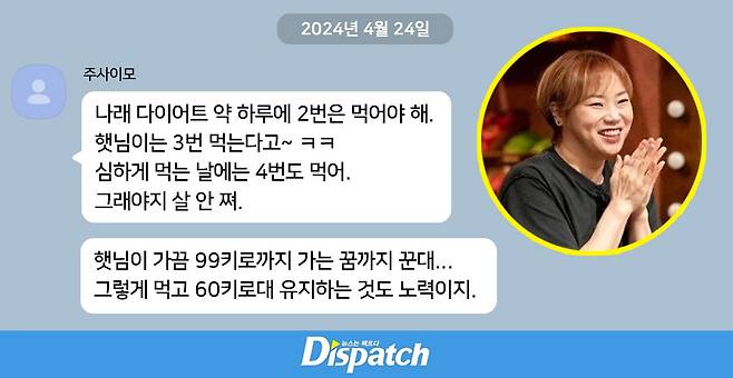 "햇님이는 3번 먹는다고 ㅋㅋ. 심하게 먹는 날에는 4번도 먹어. 햇님이 가끔 다시 99키로로 가는 꿈까지 꾼대 ㅠㅠ 그렇게 먹고 60키로대를 유지하는 것도 노력이야." (A씨)