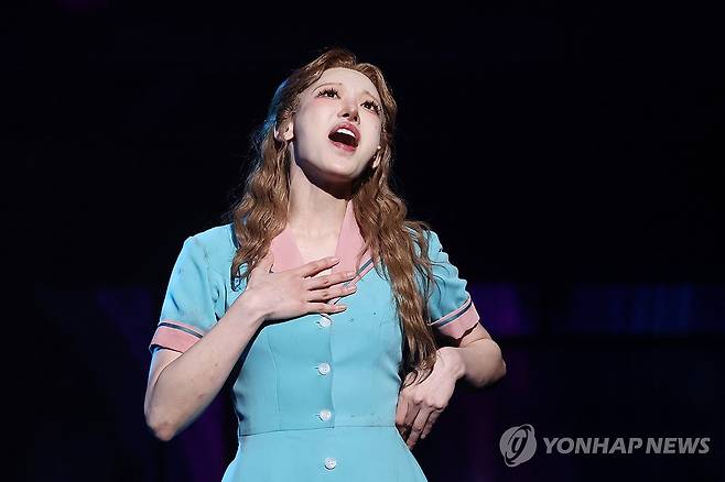 (서울=연합뉴스) 진연수 기자 = 배우 홍금비가 18일 오후 서울 종로구 홍익대학교 대학로 아트센터에서 열린 뮤지컬 '보니 앤 클라이드' 프레스콜에서 주요 장면을 시연하고 있다. 2025.12.18