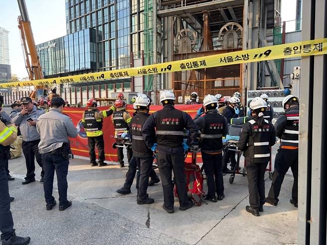 18일 경찰과 소방당국에 따르면 이날 오후 1시 22분쯤 서울 여의도 신안산선 복선전철 70m 깊이의 지하 공사 현장에서 "철근이 무너져 사람이 깔렸다"는 내용의 신고가 접수됐다.