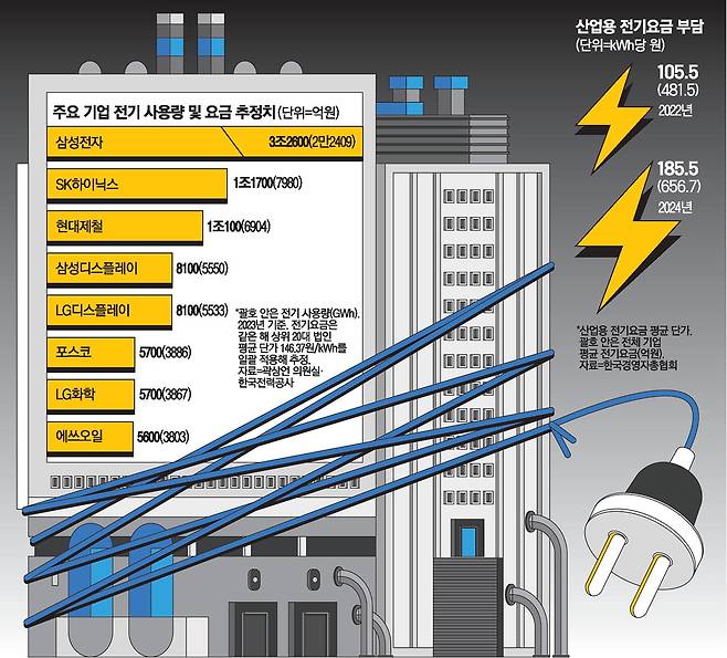 제련·철강 등 전통적인 전력 다소비 업종은 물론 삼성전자와 SK하이닉스 등 국가 핵심 반도체 기업들까지 전기요금 급등에 따른 부담을 호소하고 있다. 지난해 10월 산업통상부와 한국전력이 산업용 전기료를 평균 9.7%(대기업용 10.2%) 인상하면서 기업 부담은 더욱 커졌다. 재계에서는 상위 20대 법인이 부담하는 전기료만 연간 1조2000억원 이상 늘어날 것이라는 관측이 나온다. 철강 업계의 한 고위 관계자는 "과거에는 전기요금을 관리 가능한 원가로 봤지만, 이제는 환율이나 원자재 가격 못지않은 리스크 요인이 됐다"고 말했다.