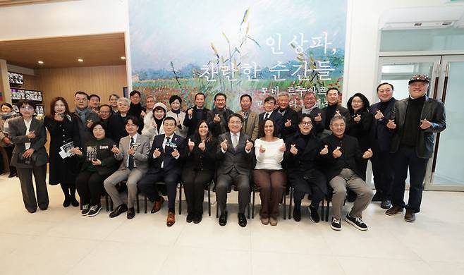 [서울=뉴시스] 오승록(앞줄 오른쪽 네번째) 노원구청장이 18일 오후 서울 노원구 노원문화예술회관 노원아트뮤지엄에서 열린 ‘인상파, 찬란한 순간들: 모네, 르누아르, 반 고흐 그리고 세잔’ 전시 개막식 행사에서 기념촬영을 하고 있다. (사진=노원구 제공) 2025.12.18. photo@newsis.com