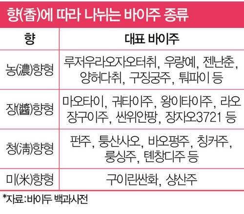 향(香) 체계와 지역별 양조법이 뚜렷하다 보니 와인이나 위스키처럼 공부하고 음미하는 ‘학습형 주류’로서 매력이 커진 점도 바이주가 인기를 끄는 비결이다.