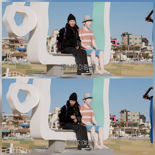 송지효가 영덕 바닷가에서 뜻밖의 ‘데이트 장면’을 연출했다. 어깨에 살포시 머리를 기댄 상대를 두고 “제 남친이에요”라고 소개했지만, 그 정체는 예상 밖이었다.