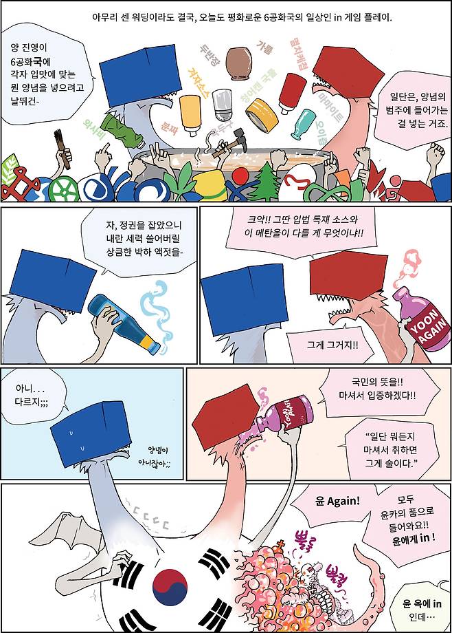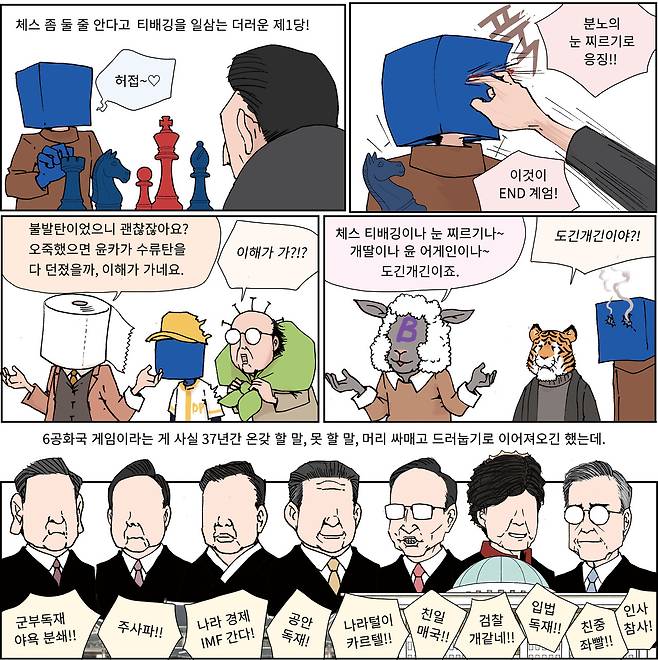 〈시사IN〉 대표 콘텐츠. 시사와 ‘서브컬처’라는 생소한 조합을 선보여 수많은 마니아층을 거느린 굽시니스트가 선보이는 통쾌·유쾌·상쾌 시사만화입니다.