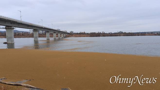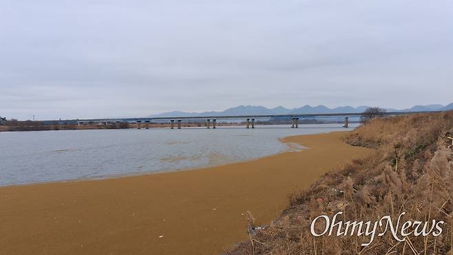 | ▲ 12월 들어 낙동강을 뒤덮다시피할 정도로 대규모 군락을 이룬 습지부엽식물 물개구리밥. |